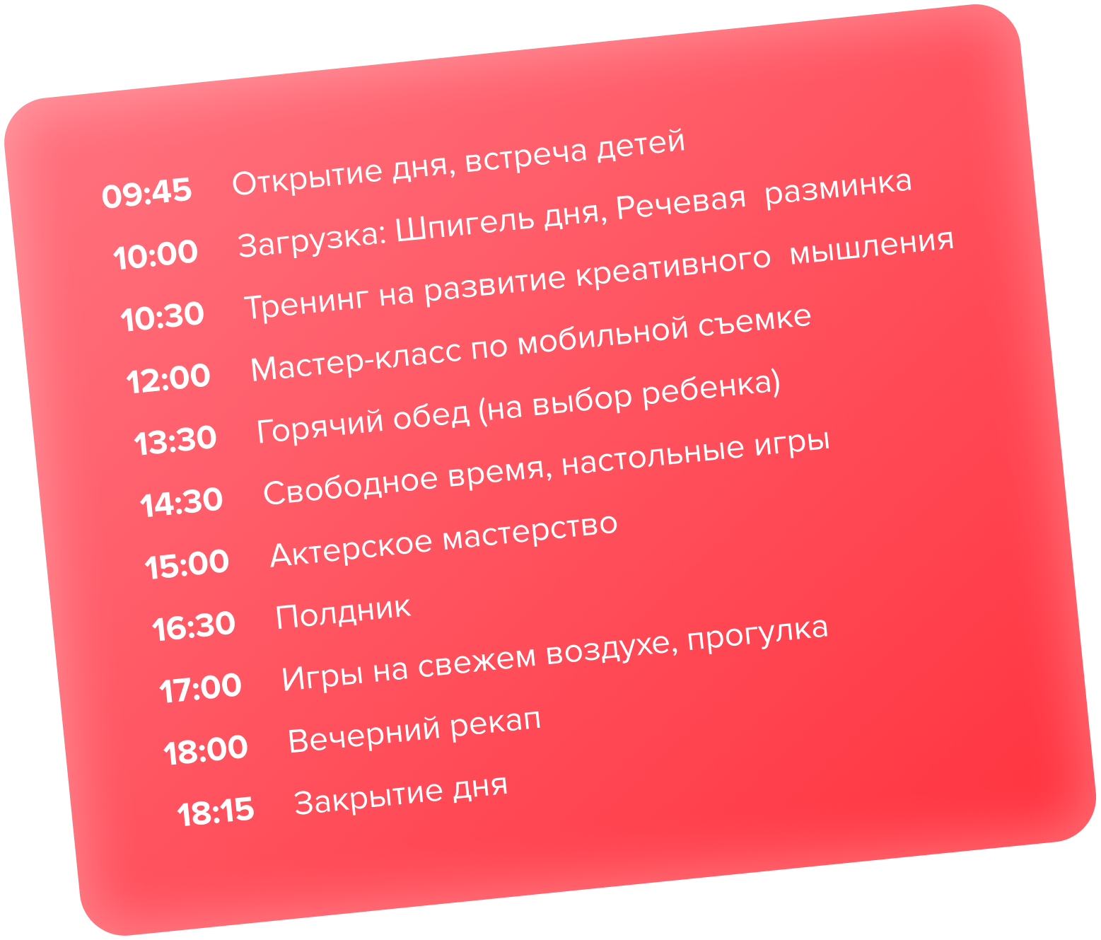 По утрам мы проводим медиазарядку. Каждый день — ТикТок челленджи, игры на креатив, съёмки роликов